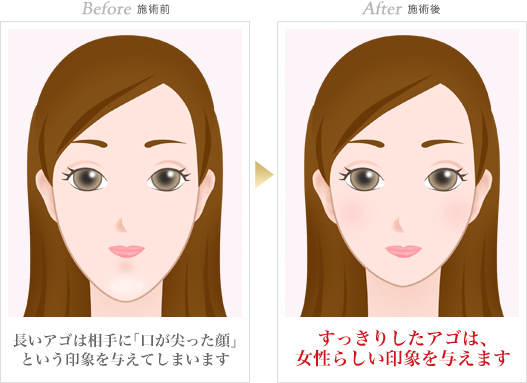 アゴの先端が大きく前方に突き出ているような場合やアゴが左右に広い場合には両側切除法が、アゴが縦方向に非常に長い場合には中抜き切除法が適応になります。