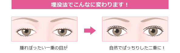 埋没法は、医療用の糸で上まぶたを留めて二重にする治療方法です。